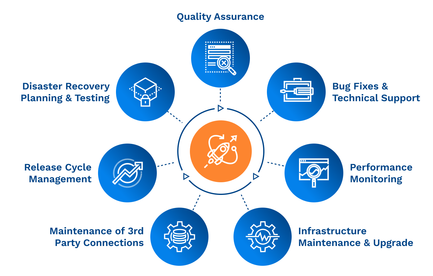 Support is essential for long-term success, stability, security, and competitiveness, and our customizable services ensure maximum uptime with proactive performance monitoring and rapid bug resolution. We also streamline release cycles and manage infrastructure through continuous maintenance, security updates, and necessary upgrades to keep systems running smoothly.